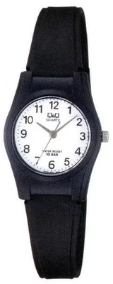 <b>Женские наручные часы Q&Q VQ03J001Y.</b> Точный кварцевый механизм с аналоговой индикацией. Полимерный корпус надежно защищает часы от механических повреждений. Полимерный ремешок. Натуральный полимерный материал является идеальным для изготовления ремешка благодаря своей чрезвычайной прочности и гибкости. Прочное, устойчивое к царапинам минеральное стекло защищает часы от повреждений.Часы являются водонепроницаемыми до 10 Бар. Цвет корпуса: Черный. Цвет циферблата: Белый. Ширина (с заводной головкой): 40мм. Гарантия: 1 год.