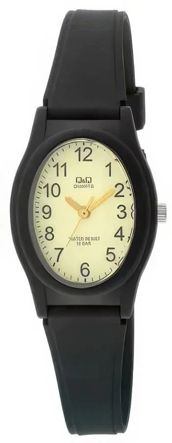 Женские наручные часы Q&Q  VQ77J003Y. Точный кварцевый механизм с аналоговой индикацией. Полимерный корпус надежно защищает часы от механических повреждений. Полимерный ремешок. Натуральный полимерный материал является идеальным для изготовления ремешка благодаря своей чрезвычайной прочности и гибкости. Прочное, устойчивое к царапинам минеральное стекло защищает часы от повреждений.Часы являются водонепроницаемыми до 10 Бар. Цвет корпуса: Черный. Ширина (с заводной головкой): 40мм. Гарантия: 1 год.