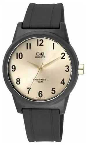 Мужские наручные часы Q&Q VR35J021Y. Точный кварцевый механизм с аналоговой индикацией. Полимерный корпус надежно защищает часы от механических повреждений. Полимерный ремешок. Натуральный полимерный материал является идеальным для изготовления ремешка благодаря своей чрезвычайной прочности и гибкости. Прочное, устойчивое к царапинам минеральное стекло защищает часы от повреждений.Часы являются водонепроницаемыми до 10 Бар. Цвет корпуса: Серый. Цвет циферблата: Золотистый. Ширина (с заводной головкой): 40мм. Гарантия: 1 год.