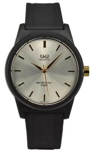 Мужские наручные часы Q&Q VR35J024Y. Точный кварцевый механизм с аналоговой индикацией. Полимерный корпус надежно защищает часы от механических повреждений. Полимерный ремешок. Натуральный полимерный материал является идеальным для изготовления ремешка благодаря своей чрезвычайной прочности и гибкости. Прочное, устойчивое к царапинам минеральное стекло защищает часы от повреждений.Часы являются водонепроницаемыми до 10 Бар. Цвет корпуса: Черный. Цвет циферблата: Серебристый. Ширина (с заводной головкой): 43мм. Гарантия: 1 год.