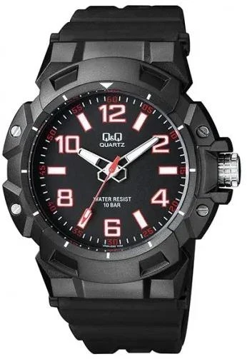 Мужские наручные часы Q&Q  VR84J002Y. Точный кварцевый механизм с аналоговой индикацией. Полимерный корпус надежно защищает часы от механических повреждений. Полимерный ремешок. Натуральный полимерный материал является идеальным для изготовления ремешка благодаря своей чрезвычайной прочности и гибкости. Прочное, устойчивое к царапинам минеральное стекло защищает часы от повреждений.Часы являются водонепроницаемыми до 10 Бар. Цвет корпуса: Черный. Цвет циферблата: Черный. Ширина (с заводной головкой): 50мм. Гарантия: 1 год.