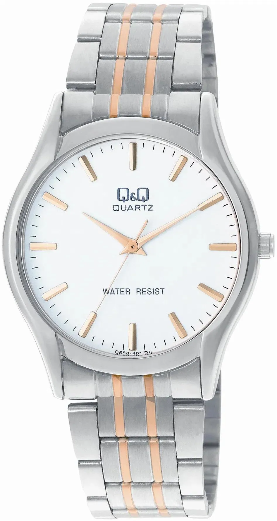 Мужские наручные часы Q&Q Q550J401Y. Точный кварцевый механизм с аналоговой индикацией. Корпус изготовлен из высококачественной часовой латуни с высокими антикоррозийными свойствами. Браслет из нержавеющей стали. Прочное, устойчивое к царапинам минеральное стекло защищает часы от повреждений.Часы являются водонепроницаемыми до 5 Бар. Цвет циферблата: Белый. Гарантия: 1 год.