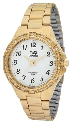 Точный кварцевый механизм. Центральная секундная стрелка. • Точность хода не хуже -10 +15 сек./в месяц. • Минеральное стекло устойчивое к возникновению царапин. • Латунный корпус со стойким PVD покрытием. • Инкрустация искусственными кристаллами. • Водозащита до 5 АТМ. • Регулируемый по длине браслет из нержавеющей стали. • Надежный браслетный замок. • Диаметр 37 мм.