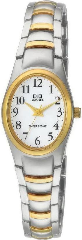 Женские наручные часики небольшого диаметра на прочном стальном браслете в корпусе овальной формы.
