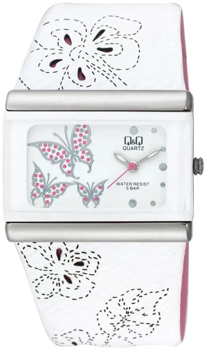 <b>Женские наручные часы Q&Q GV79J003Y.</b> Точный кварцевый механизм с аналоговой индикацией. Корпус изготовлен из высококачественной часовой латуни с высокими антикоррозийными свойствами. Ремешок изготовлен из кожи. Прочное, устойчивое к царапинам минеральное стекло защищает часы от повреждений.Часы являются водонепроницаемыми до 5 Бар. Цвет корпуса: Белый. Цвет циферблата: Белый. Гарантия: 1 год.