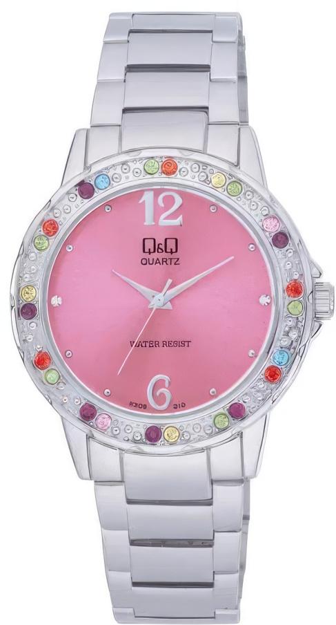 <b>Женские наручные часы Q&Q KX09J212Y.</b> Точный кварцевый механизм с аналоговой индикацией. Корпус изготовлен из высококачественной часовой латуни с высокими антикоррозийными свойствами. Ремешок изготовлен из кожи. Прочное, устойчивое к царапинам минеральное стекло защищает часы от повреждений.Часы являются водонепроницаемыми до 5 Бар. Цвет корпуса: Двухцветный. Цвет циферблата: Розовый. Гарантия: 1 год.
