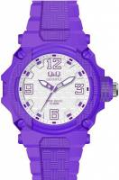 Мужские наручные часы Q&Q  VR56J008Y. Точный кварцевый механизм с аналоговой индикацией. Полимерный корпус надежно защищает часы от механических повреждений. Полимерный ремешок. Натуральный полимерный материал является идеальным для изготовления ремешка благодаря своей чрезвычайной прочности и гибкости. Прочное, устойчивое к царапинам минеральное стекло защищает часы от повреждений.Часы являются водонепроницаемыми до 10 Бар. Цвет корпуса: Фиолетовый. Цвет циферблата: Серый. Ширина (с заводной головкой): 41мм. Гарантия: 1 год.