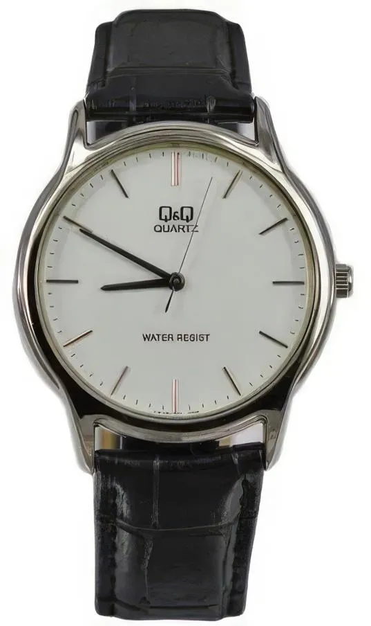 <b>Мужские наручные часы Q&Q VW38J301Y.</b> Точный кварцевый механизм с аналоговой индикацией. Корпус изготовлен из высококачественной часовой латуни с высокими антикоррозийными свойствами. Ремешок изготовлен из кожи. Прочное, устойчивое к царапинам минеральное стекло защищает часы от повреждений.Часы являются водонепроницаемыми до 3 Бар. Цвет корпуса: Серебристый. Цвет циферблата: Серый. Ширина (с заводной головкой): 48мм. Гарантия: 1 год.