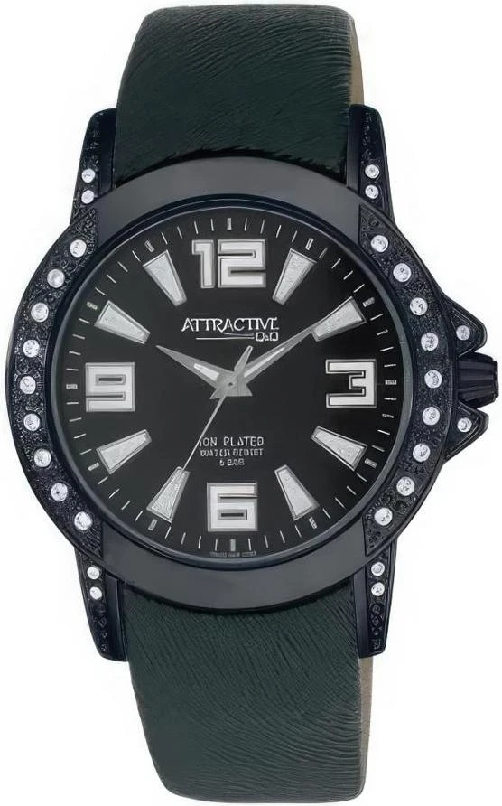 Женские наручные часы Q&Q  DA25J505Y. Точный кварцевый механизм с аналоговой индикацией. Корпус изготовлен из высококачественной часовой латуни с высокими антикоррозийными свойствами. На циферблате отображается текущее число месяца и день недели. Ремешок изготовлен из кожи. Прочное, устойчивое к царапинам минеральное стекло защищает часы от повреждений.Часы являются водонепроницаемыми до 5 Бар. Цвет корпуса: Черный. Цвет циферблата: Черный. Ширина (с заводной головкой): 42мм. Гарантия: 1 год.