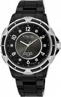 Точный кварцевый механизм. Центральная секундная стрелка. • Точность хода не хуже -10 +15 сек./в месяц. • Минеральное стекло устойчивое к возникновению царапин. • Комбинированный корпус из латуни со стойким PVD покрытием и пластика. • Инкрустация искусственными кристаллами. • Чёрный ремешок из полимерного материала. • Водозащита до 5 АТМ. • Диаметр корпуса 43 мм, толщина 12 мм. Вес 55 гр.