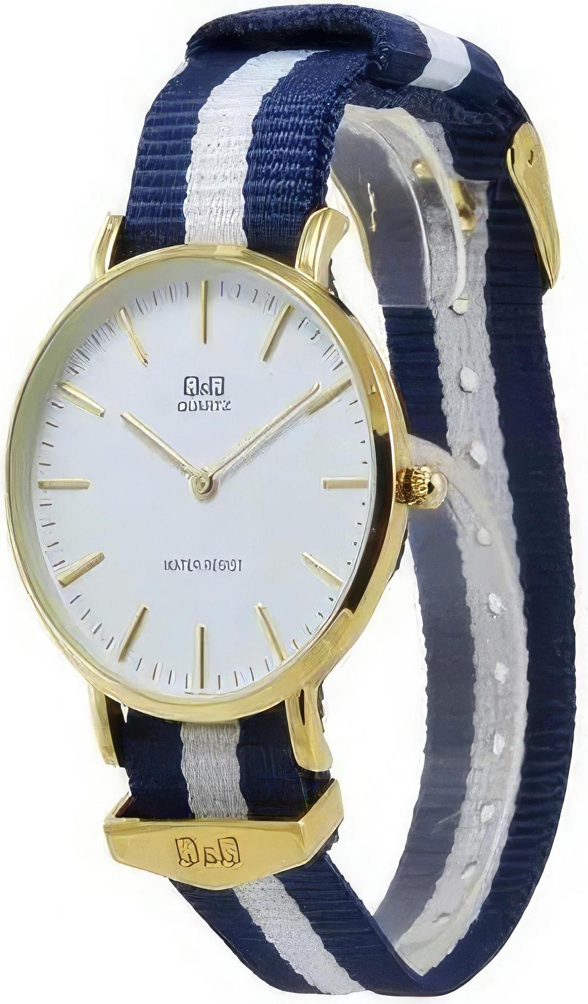 Мужские наручные часы Q&Q  Q974J803Y. Точный кварцевый механизм с аналоговой индикацией. Корпус изготовлен из высококачественной часовой латуни с высокими антикоррозийными свойствами. Текстильный ремешок. Прочное, устойчивое к царапинам минеральное стекло защищает часы от повреждений.Часы являются водонепроницаемыми до 3 Бар. Цвет корпуса: Желтое золото. Цвет циферблата: Голубой. Ширина (с заводной головкой): 39мм. Гарантия: 1 год.