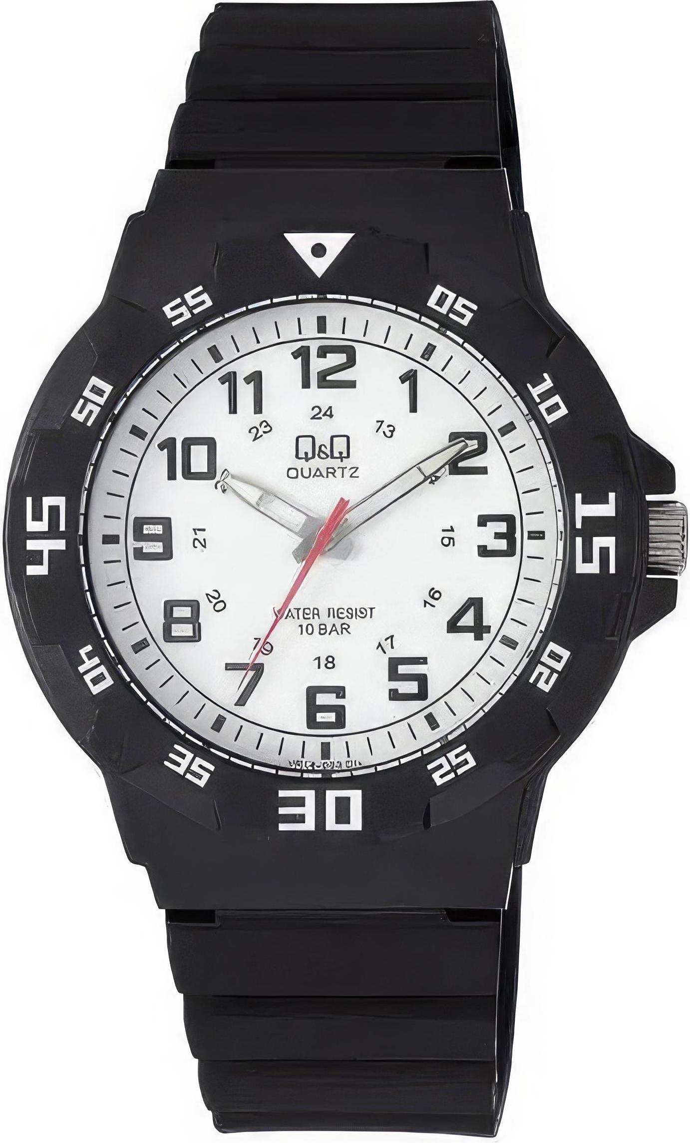 Мужские наручные часы Q&Q VR18J003Y. Точный кварцевый механизм с аналоговой индикацией. Полимерный корпус надежно защищает часы от механических повреждений. Полимерный ремешок. Натуральный полимерный материал является идеальным для изготовления ремешка благодаря своей чрезвычайной прочности и гибкости. Прочное, устойчивое к царапинам минеральное стекло защищает часы от повреждений. Часы являются водонепроницаемыми до 10 Бар. Цвет корпуса: Черный. Цвет циферблата: Белый. Диаметр корпуса: 43мм. Гарантия: 1 год.