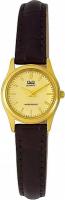 Женские наручные часы Q&Q Q853J100Y. Точный кварцевый механизм с аналоговой индикацией. Корпус изготовлен из высококачественной часовой латуни с высокими антикоррозийными свойствами. Ремешок изготовлен из кожи. Прочное, устойчивое к царапинам минеральное стекло защищает часы от повреждений.Часы являются водонепроницаемыми до 5 Бар. Цвет корпуса: Желтое золото. Цвет циферблата: Желтый. Гарантия: 1 год.
