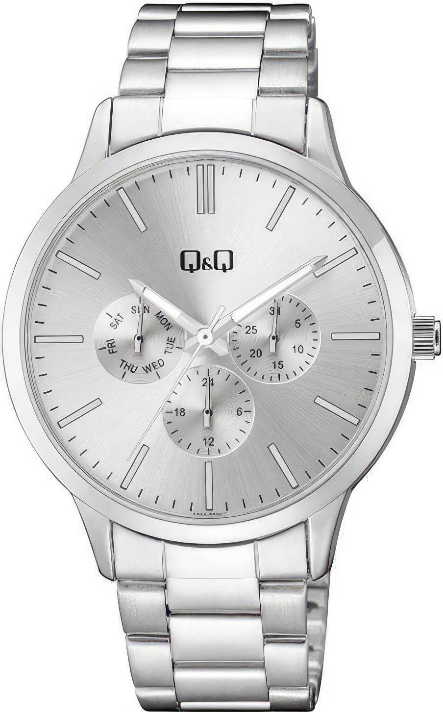 Мужские наручные часы Q&Q Casual A01AJ001Y. Точный кварцевый механизм с аналоговой индикацией. Браслет из нержавеющей стали. Отображение времени возможно в 12-часовом или 24-часовом формате. Латунный браслет. Прочное, устойчивое к царапинам минеральное стекло защищает часы от повреждений. На циферблате отображается текущее число месяца и день недели. Часы являются водонепроницаемыми до 3 Бар. Цвет циферблата: Серебристый. Цвет корпуса: Серебристый. На стрелки и отметки нанесен светонакопительный состав, благодаря этому считывать информацию с циферблата возможно и в темноте. Толщина: 8 мм. Гарантия: 1 год.