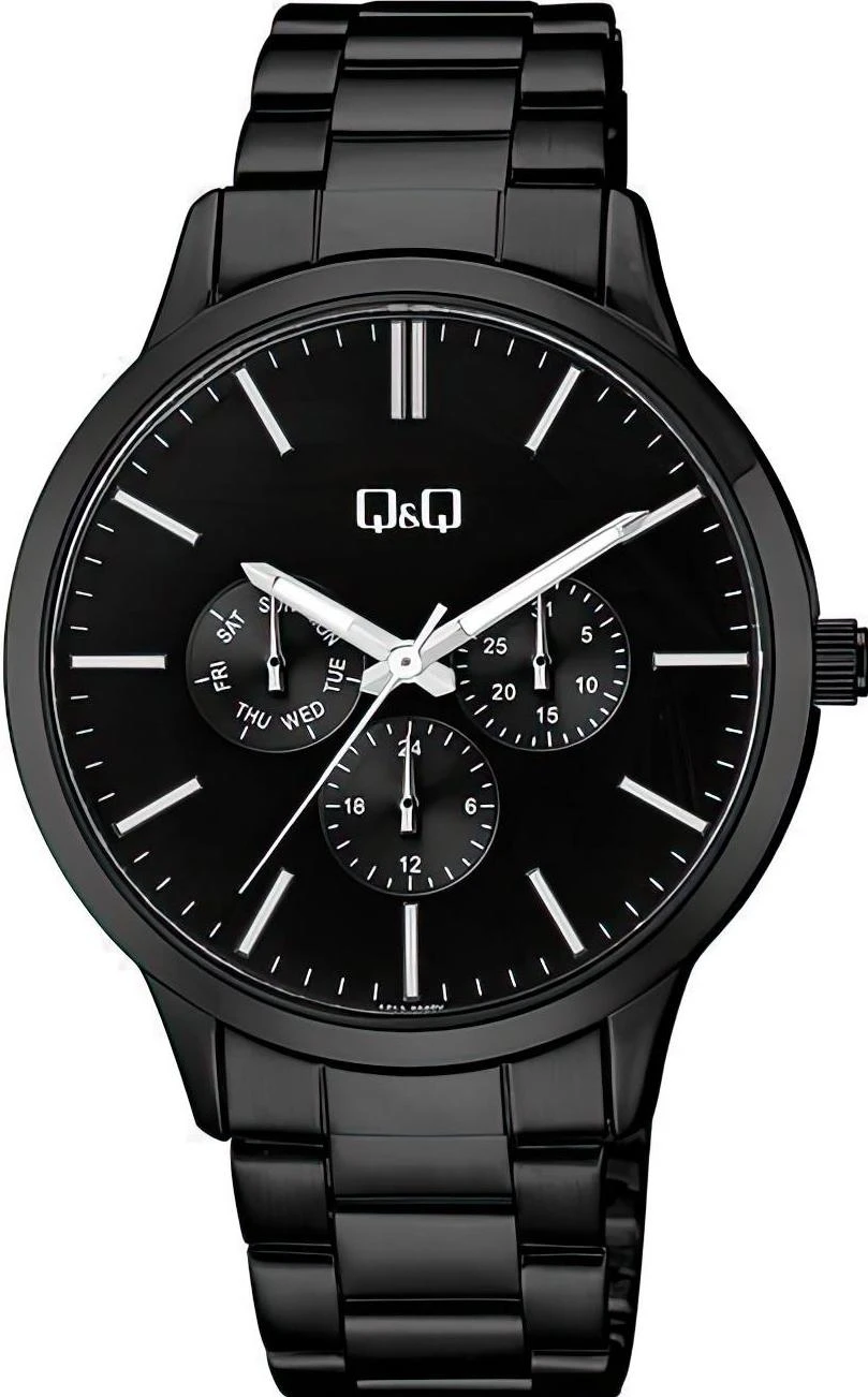 Мужские наручные часы Q&Q Casual A01AJ004Y. Точный кварцевый механизм с аналоговой индикацией. Браслет из нержавеющей стали. Отображение времени возможно в 12-часовом или 24-часовом формате. Латунный браслет. Прочное, устойчивое к царапинам минеральное стекло защищает часы от повреждений. На циферблате отображается текущее число месяца и день недели. Часы являются водонепроницаемыми до 3 Бар. Цвет циферблата: Черный. Цвет корпуса: Черный. На стрелки и отметки нанесен светонакопительный состав, благодаря этому считывать информацию с циферблата возможно и в темноте. Толщина: 9 мм. Гарантия: 1 год.