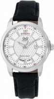Мужские наручные часы Q&Q A184J301Y. Точный кварцевый механизм с аналоговой индикацией. Корпус изготовлен из высококачественной часовой латуни с высокими антикоррозийными свойствами. На стрелки и отметки нанесен светонакопительный состав, благодаря этому считывать информацию с циферблата возможно и в темноте. На циферблате отображается текущее число месяца и день недели. Ремешок изготовлен из кожи. Прочное, устойчивое к царапинам минеральное стекло защищает часы от повреждений.Часы являются водонепроницаемыми до 3 Бар. Цвет корпуса: Серебристый. Цвет циферблата: Белый. Ширина (с заводной головкой): 40мм. Толщина: 10мм. Гарантия: 1 год.