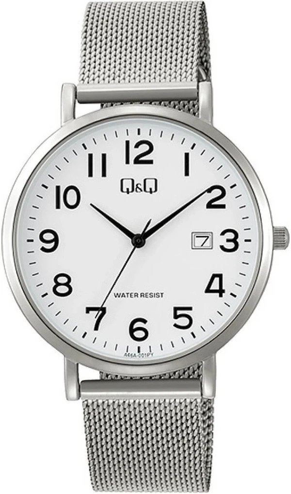 Мужские наручные часы Q&Q Casual A46AJ001Y. Точный кварцевый механизм с аналоговой индикацией. В отличие от механических часов, не требуют завода и работают от батареи, показывая отклонение всего несколько секунд в месяц. Браслет из нержавеющей стали обладает высокой прочностью и износостойкостью, обеспечивая долговечность даже при активной эксплуатации. Материал устойчив к коррозии и сохраняет свой внешний вид надолго. Корпус изготовлен из высококачественной часовой латуни с высокими антикоррозийными свойствами. Прочное, устойчивое к царапинам минеральное стекло защищает часы от повреждений. Часы являются водонепроницаемыми до 3 Бар. Цвет корпуса: Серебристый. Цвет циферблата: Белый. Высота (с ушками): 40 мм. Толщина: 8 мм. Гарантия: 1 год.