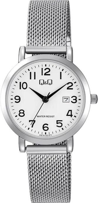 Женские наручные часы Q&Q Casual A47AJ001Y. Точный кварцевый механизм с аналоговой индикацией. В отличие от механических часов, не требуют завода и работают от батареи, показывая отклонение всего несколько секунд в месяц. Браслет из нержавеющей стали обладает высокой прочностью и износостойкостью, обеспечивая долговечность даже при активной эксплуатации. Материал устойчив к коррозии и сохраняет свой внешний вид надолго. Корпус изготовлен из высококачественной часовой латуни с высокими антикоррозийными свойствами. Прочное, устойчивое к царапинам минеральное стекло защищает часы от повреждений. Часы являются водонепроницаемыми до 3 Бар. Цвет корпуса: Серебристый. Цвет циферблата: Белый. Высота (с ушками): 31 мм. Толщина: 8 мм. Гарантия: 1 год.