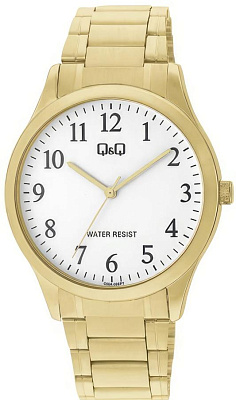 Мужские наручные часы Q&Q Casual C00AJ006Y. Точный кварцевый механизм с аналоговой индикацией. Браслет из нержавеющей стали. Браслет из нержавеющей стали. Прочное, устойчивое к царапинам минеральное стекло защищает часы от повреждений. Часы являются водонепроницаемыми до 3 Бар. Цвет циферблата: Желтое золото. Цвет корпуса: Белый. Толщина: 8 мм. Гарантия: 1 год.