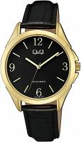 Женские наручные часы Q&Q Casual C04AJ010Y. Точный кварцевый механизм с аналоговой индикацией. Ремешок изготовлен из кожи. Латунный браслет. Прочное, устойчивое к царапинам минеральное стекло защищает часы от повреждений. Часы являются водонепроницаемыми до 3 Бар. Цвет циферблата: Желтое золото. Цвет корпуса: Черный. Толщина: 9 мм. Гарантия: 1 год.