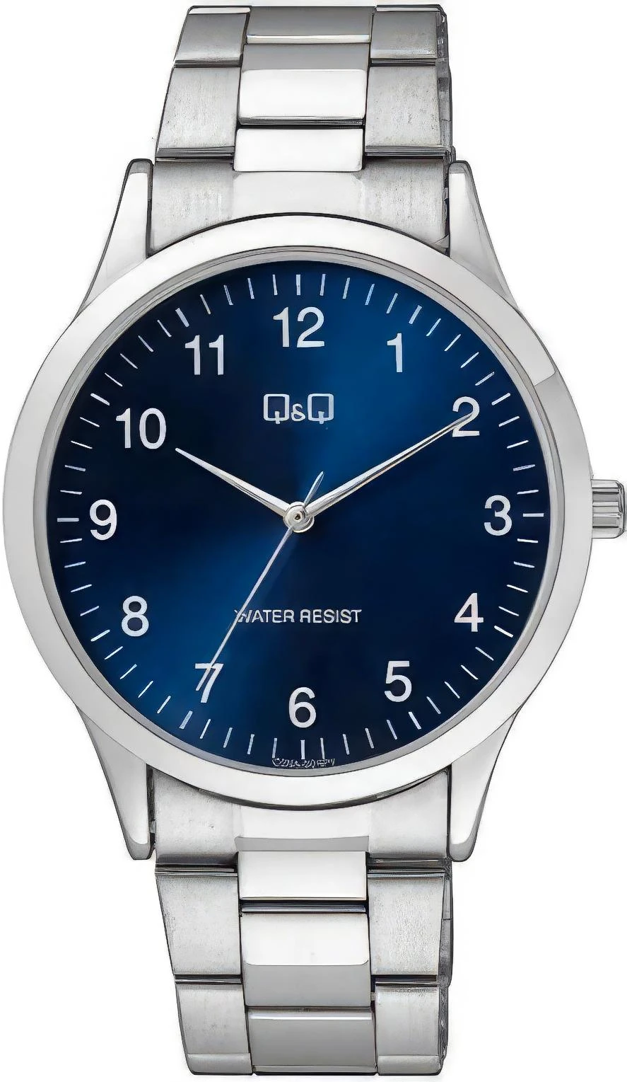 Мужские наручные часы Q&Q Casual C08AJ001Y. Точный кварцевый механизм с аналоговой индикацией. Корпус изготовлен из высококачественной часовой латуни с высокими антикоррозийными свойствами. Браслет из нержавеющей стали. Прочное, устойчивое к царапинам минеральное стекло защищает часы от повреждений.Часы являются водонепроницаемыми до 3 Бар. Цвет корпуса: Серебристый. Цвет циферблата: Синий. Ширина (с заводной головкой): 40мм. Толщина: 7мм. Гарантия: 1 год.