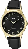Мужские наручные часы Q&Q Casual C10AJ021Y. Точный кварцевый механизм с аналоговой индикацией. Ремешок изготовлен из кожи. Браслет из нержавеющей стали. Прочное, устойчивое к царапинам минеральное стекло защищает часы от повреждений. Часы являются водонепроницаемыми до 3 Бар. Цвет циферблата: Желтое золото. Цвет корпуса: Черный. Толщина: 9 мм. Гарантия: 1 год.