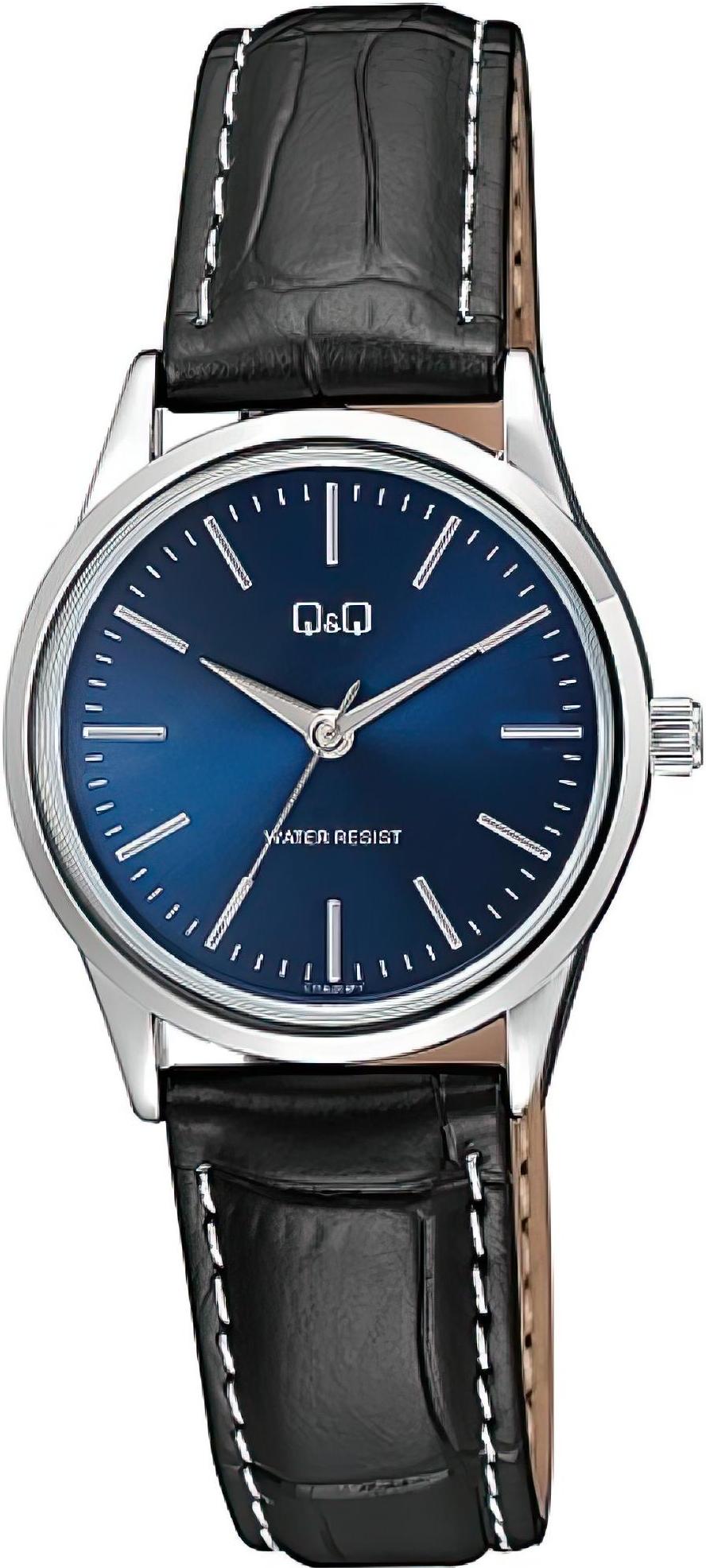 Женские наручные часы Q&Q Casual C11AJ014Y. Точный кварцевый механизм с аналоговой индикацией. Ремешок изготовлен из кожи. Латунный браслет. Прочное, устойчивое к царапинам минеральное стекло защищает часы от повреждений. Часы являются водонепроницаемыми до 3 Бар. Цвет циферблата: Серебристый. Цвет корпуса: Синий. Толщина: 8 мм. Гарантия: 1 год.
