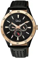 Мужские наручные часы Q&Q Casual CE02J542Y. Точный кварцевый механизм с аналоговой индикацией. Ремешок изготовлен из кожи. Отображение времени возможно в 12-часовом или 24-часовом формате. Латунный браслет. Прочное, устойчивое к царапинам минеральное стекло защищает часы от повреждений. На циферблате отображается текущее число месяца и день недели. Часы являются водонепроницаемыми до 5 Бар. Цвет циферблата: Черный. Цвет циферблата: Розовое золото. Цвет корпуса: Черный. На стрелки и отметки нанесен светонакопительный состав, благодаря этому считывать информацию с циферблата возможно и в темноте. Толщина: 11 мм. Гарантия: 1 год.