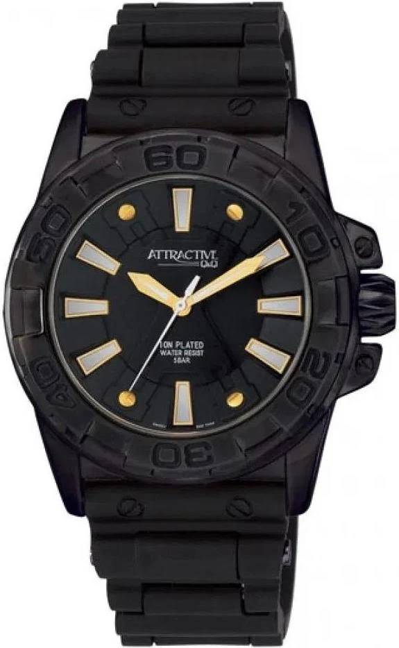 Мужские наручные часы Q&Q DA32J512Y. Точный кварцевый механизм с аналоговой индикацией. Корпус изготовлен из высококачественной часовой латуни с высокими антикоррозийными свойствами. На стрелки и отметки нанесен светонакопительный состав, благодаря этому считывать информацию с циферблата возможно и в темноте. Полимерный ремешок. Натуральный полимерный материал является идеальным для изготовления ремешка благодаря своей чрезвычайной прочности и гибкости. Прочное, устойчивое к царапинам минеральное стекло защищает часы от повреждений.Часы являются водонепроницаемыми до 5 Бар. Цвет корпуса: Черный. Цвет циферблата: Черный. Ширина (с заводной головкой): 43мм. Толщина: 11мм. Гарантия: 1 год.