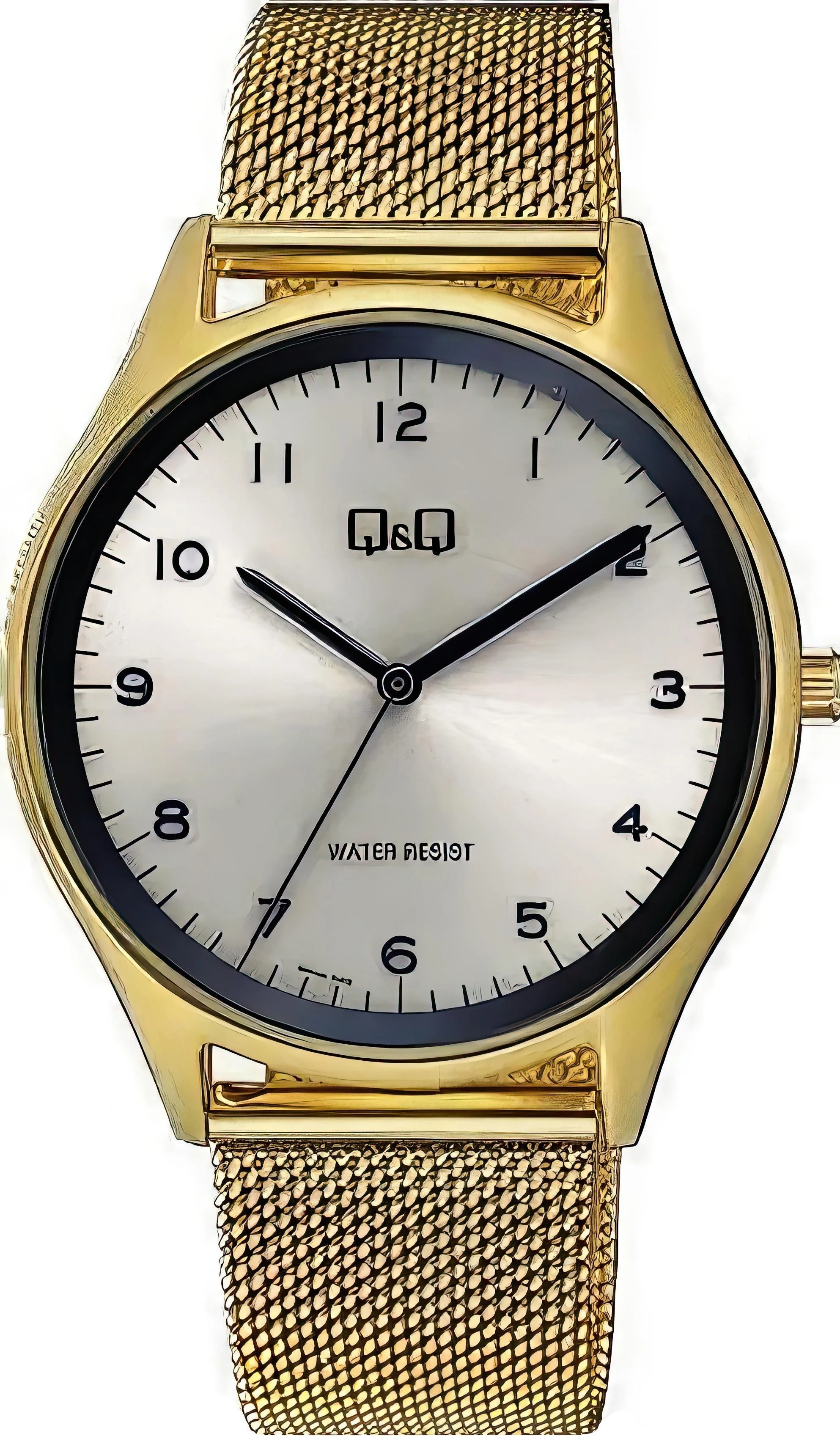 Мужские наручные часы Q&Q Casual Q00AJ004Y. Точный кварцевый механизм с аналоговой индикацией. Браслет из нержавеющей стали. Латунный браслет. Прочное, устойчивое к царапинам минеральное стекло защищает часы от повреждений. Часы являются водонепроницаемыми до 3 Бар. Цвет циферблата: Желтое золото. Цвет корпуса: Серебристый. Толщина: 9 мм. Гарантия: 1 год.