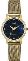 Женские наручные часы Q&Q Casual Q48AJ005Y. Точный кварцевый механизм с аналоговой индикацией. Браслет из нержавеющей стали. Браслет из нержавеющей стали. Прочное, устойчивое к царапинам минеральное стекло защищает часы от повреждений. Часы являются водонепроницаемыми до 3 Бар. Цвет циферблата: Желтое золото. Цвет корпуса: Синий. Толщина: 8 мм. Гарантия: 1 год.