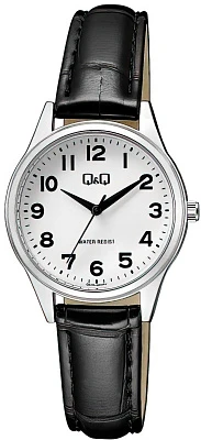 Женские наручные часы Q&Q Casual Q57AJ001Y. Точный кварцевый механизм с аналоговой индикацией. Ремешок изготовлен из кожи. Латунный браслет. Прочное, устойчивое к царапинам минеральное стекло защищает часы от повреждений. Часы являются водонепроницаемыми до 3 Бар. Цвет циферблата: Серебристый. Цвет корпуса: Белый. Толщина: 8 мм. Гарантия: 1 год.