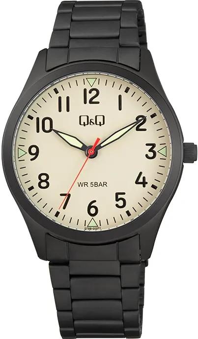 Мужские наручные часы Q&Q Casual Q76BJ002Y. Точный кварцевый механизм с аналоговой индикацией. В отличие от механических часов, не требуют завода и работают от батареи, показывая отклонение всего несколько секунд в месяц. Браслет из нержавеющей стали обладает высокой прочностью и износостойкостью, обеспечивая долговечность даже при активной эксплуатации. Материал устойчив к коррозии и сохраняет свой внешний вид надолго. Корпус изготовлен из высококачественной нержавеющей стали 316L с высокими антикоррозийными свойствами. Прочное, устойчивое к царапинам минеральное стекло защищает часы от повреждений. Часы являются водонепроницаемыми до 5 Бар. Цвет корпуса: Черный. Цвет циферблата: Бежевый. Толщина: 8.2 мм. Гарантия: 1 год.