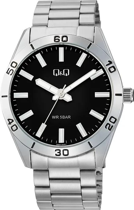 Мужские наручные часы Q&Q Casual Q86BJ002Y. Точный кварцевый механизм с аналоговой индикацией. В отличие от механических часов, не требуют завода и работают от батареи, показывая отклонение всего несколько секунд в месяц. Браслет из нержавеющей стали обладает высокой прочностью и износостойкостью, обеспечивая долговечность даже при активной эксплуатации. Материал устойчив к коррозии и сохраняет свой внешний вид надолго. Корпус изготовлен из высококачественной часовой латуни с высокими антикоррозийными свойствами. Прочное, устойчивое к царапинам минеральное стекло защищает часы от повреждений. Часы являются водонепроницаемыми до 5 Бар. Цвет корпуса: Серебристый. Цвет циферблата: Черный. Толщина: 10.26 мм. Гарантия: 1 год.