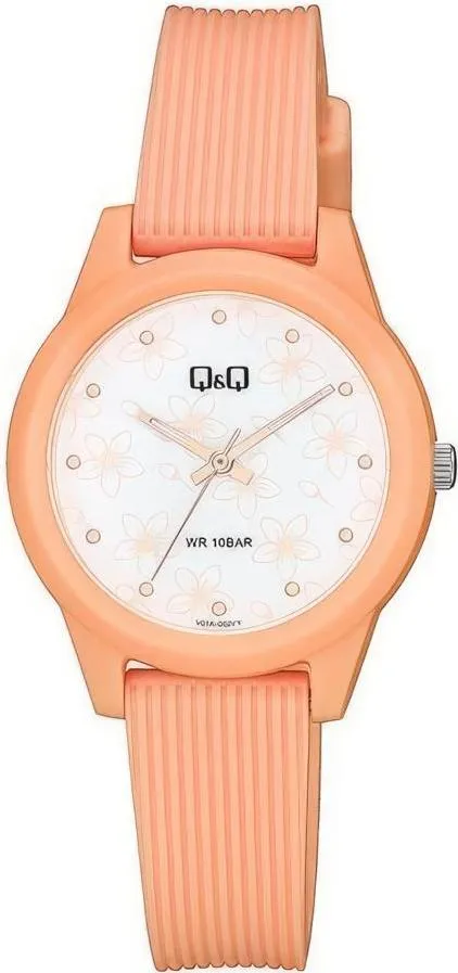 Женские наручные часы Q&Q Casual V01AJ002VY. Точный кварцевый механизм с аналоговой индикацией. Полимерный ремешок. Натуральный полимерный материал является идеальным для изготовления ремешка благодаря своей чрезвычайной прочности и гибкости. Полимерный ремешок. Натуральный полимерный материал является идеальным для изготовления ремешка благодаря своей чрезвычайной прочности и гибкости. Органическое стекло. Часы являются водонепроницаемыми до 10 Бар. Цвет циферблата: Оранжевый. Цвет корпуса: Белый. Толщина: 10 мм. Гарантия: 1 год.