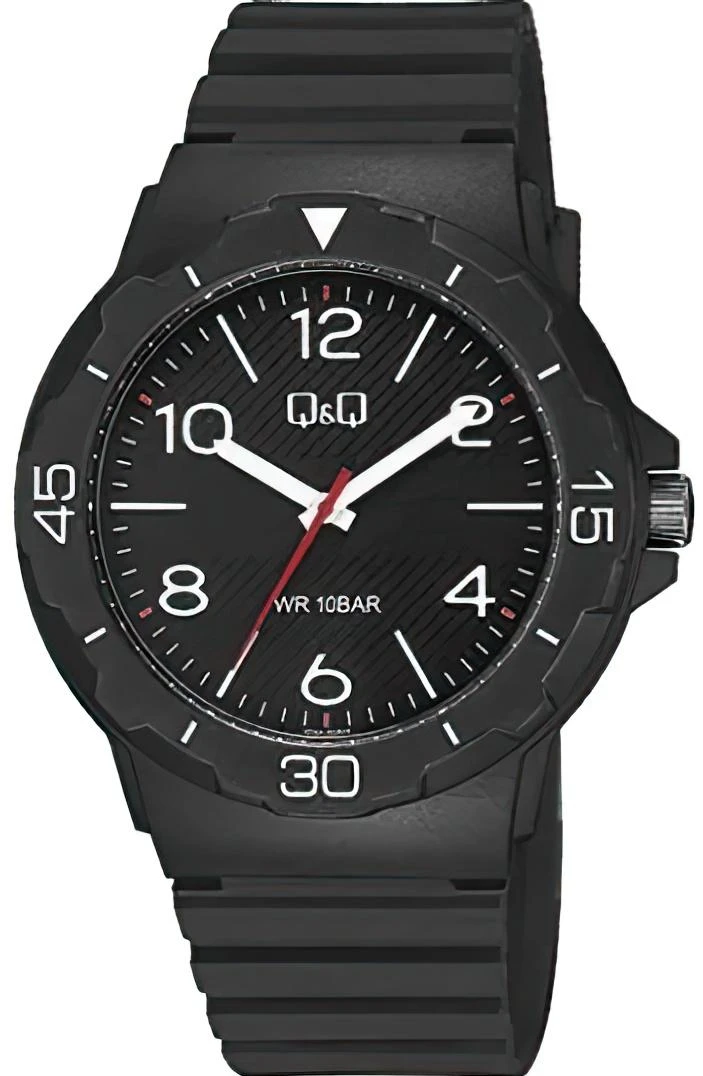 Мужские наручные часы Q&Q Casual V02AJ003Y. Точный кварцевый механизм с аналоговой индикацией. Полимерный корпус надежно защищает часы от механических повреждений. На стрелки и отметки нанесен светонакопительный состав, благодаря этому считывать информацию с циферблата возможно и в темноте. Ударопрочная конструкция часов защищает от ударов и вибрации. Полимерный ремешок. Натуральный полимерный материал является идеальным для изготовления ремешка благодаря своей чрезвычайной прочности и гибкости. Органическое стекло. Часы являются водонепроницаемыми до 10 Бар. Цвет корпуса: Черный. Цвет циферблата: Черный. Ширина (с заводной головкой): 40мм. Толщина: 11мм. Гарантия: 1 год.