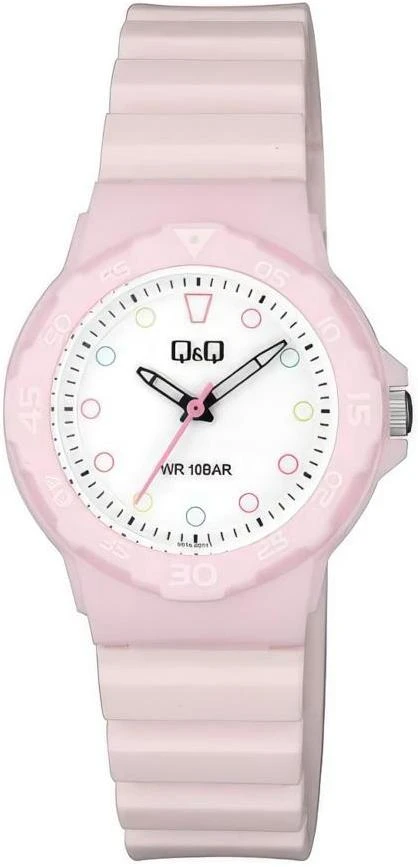 Женские наручные часы Q&Q Casual V07AJ001VY. Точный кварцевый механизм с аналоговой индикацией. Полимерный ремешок. Натуральный полимерный материал является идеальным для изготовления ремешка благодаря своей чрезвычайной прочности и гибкости. Полимерный ремешок. Натуральный полимерный материал является идеальным для изготовления ремешка благодаря своей чрезвычайной прочности и гибкости. Органическое стекло. Часы являются водонепроницаемыми до 10 Бар. Цвет циферблата: Розовое золото. Цвет корпуса: Белый. На стрелки и отметки нанесен светонакопительный состав, благодаря этому считывать информацию с циферблата возможно и в темноте. Толщина: 9 мм. Гарантия: 1 год.