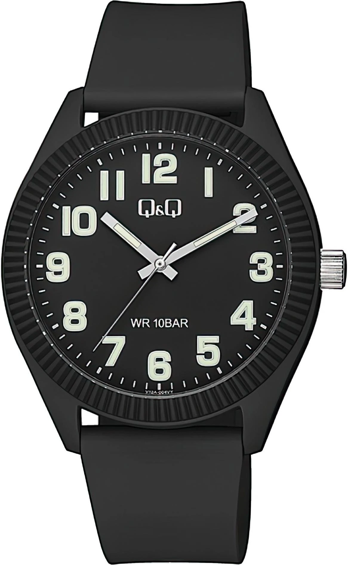 Мужские наручные часы Q&Q Casual V12AJ004Y. Точный кварцевый механизм с аналоговой индикацией. Полимерный ремешок. Натуральный полимерный материал является идеальным для изготовления ремешка благодаря своей чрезвычайной прочности и гибкости. Ударопрочная конструкция часов защищает от ударов и вибрации. Полимерный ремешок. Натуральный полимерный материал является идеальным для изготовления ремешка благодаря своей чрезвычайной прочности и гибкости. Органическое стекло. Часы являются водонепроницаемыми до 10 Бар. Цвет циферблата: Черный. Цвет корпуса: Черный. На стрелки и отметки нанесен светонакопительный состав, благодаря этому считывать информацию с циферблата возможно и в темноте. Толщина: 11 мм. Гарантия: 1 год.
