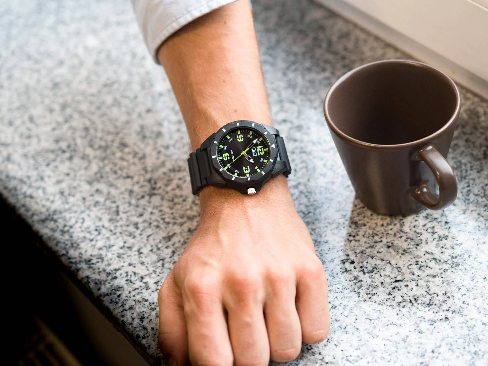 Мужские наручные часы Q&Q Casual V30AJ005Y. Точный кварцевый механизм с аналоговой индикацией. Полимерный корпус надежно защищает часы от механических повреждений. На стрелки и отметки нанесен светонакопительный состав, благодаря этому считывать информацию с циферблата возможно и в темноте. Полимерный ремешок. Натуральный полимерный материал является идеальным для изготовления ремешка благодаря своей чрезвычайной прочности и гибкости. Прочное, устойчивое к царапинам минеральное стекло защищает часы от повреждений.Часы являются водонепроницаемыми до 10 Бар. Цвет корпуса: Черный. Цвет циферблата: Черный. Ширина (с заводной головкой): 45мм. Толщина: 12мм. Гарантия: 1 год.