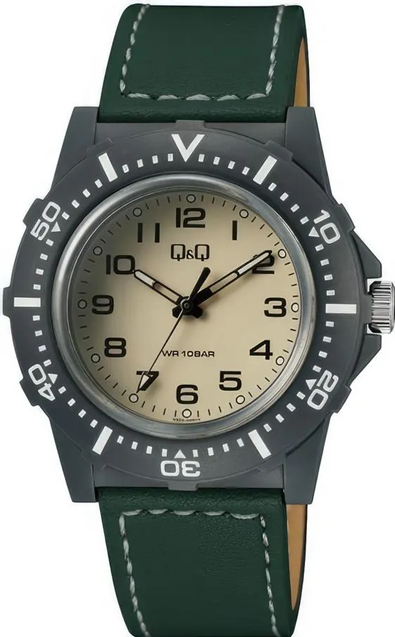 Мужские наручные часы Q&Q Casual V32AJ009Y. Точный кварцевый механизм с аналоговой индикацией. Ремешок изготовлен из кожи. Полимерный ремешок. Натуральный полимерный материал является идеальным для изготовления ремешка благодаря своей чрезвычайной прочности и гибкости. Органическое стекло. Часы являются водонепроницаемыми до 10 Бар. Цвет циферблата: Серый. Цвет корпуса: Бежевый. На стрелки и отметки нанесен светонакопительный состав, благодаря этому считывать информацию с циферблата возможно и в темноте. Толщина: 14 мм. Гарантия: 1 год.