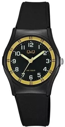 Мужские наручные часы Q&Q Casual VQ04J012Y. Точный кварцевый механизм с аналоговой индикацией. Полимерный ремешок. Натуральный полимерный материал является идеальным для изготовления ремешка благодаря своей чрезвычайной прочности и гибкости. Полимерный ремешок. Натуральный полимерный материал является идеальным для изготовления ремешка благодаря своей чрезвычайной прочности и гибкости. Органическое стекло. Часы являются водонепроницаемыми до 10 Бар. Цвет циферблата: Черный. Цвет корпуса: Желтый. Цвет корпуса: Черный. На стрелки и отметки нанесен светонакопительный состав, благодаря этому считывать информацию с циферблата возможно и в темноте. Толщина: 9 мм. Гарантия: 1 год.