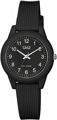 Женские наручные часы Q&Q Casual VS13J007Y. Точный кварцевый механизм с аналоговой индикацией. Полимерный корпус надежно защищает часы от механических повреждений. На стрелки и отметки нанесен светонакопительный состав, благодаря этому считывать информацию с циферблата возможно и в темноте. Полимерный ремешок. Натуральный полимерный материал является идеальным для изготовления ремешка благодаря своей чрезвычайной прочности и гибкости. Органическое стекло. Часы являются водонепроницаемыми до 10 Бар. Цвет корпуса: Фиолетовый. Цвет циферблата: Фиолетовый. Ширина (с заводной головкой): 32мм. Толщина: 10мм. Гарантия: 1 год.
