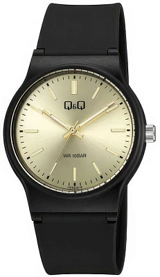 Мужские наручные часы Q&Q Casual VS50J016Y. Точный кварцевый механизм с аналоговой индикацией. Полимерный ремешок. Натуральный полимерный материал является идеальным для изготовления ремешка благодаря своей чрезвычайной прочности и гибкости. Полимерный ремешок. Натуральный полимерный материал является идеальным для изготовления ремешка благодаря своей чрезвычайной прочности и гибкости. Прочное, устойчивое к царапинам минеральное стекло защищает часы от повреждений. Часы являются водонепроницаемыми до 10 Бар. Цвет циферблата: Черный. Цвет корпуса: Золотистый. Толщина: 9 мм. Гарантия: 1 год.