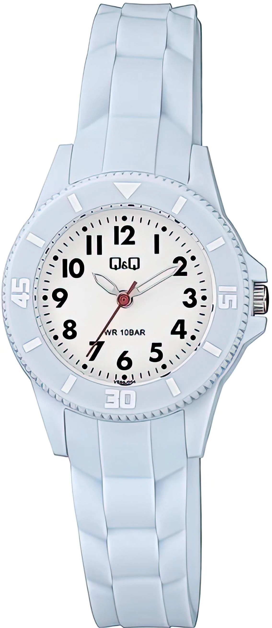 Женские наручные часы Q&Q Casual VS66J004Y. Точный кварцевый механизм с аналоговой индикацией. Полимерный корпус надежно защищает часы от механических повреждений. На стрелки и отметки нанесен светонакопительный состав, благодаря этому считывать информацию с циферблата возможно и в темноте. Полимерный ремешок. Натуральный полимерный материал является идеальным для изготовления ремешка благодаря своей чрезвычайной прочности и гибкости. Органическое стекло. Часы являются водонепроницаемыми до 10 Бар. Цвет корпуса: Голубой. Цвет циферблата: Белый. Ширина (с заводной головкой): 30мм. Толщина: 10мм. Гарантия: 1 год.