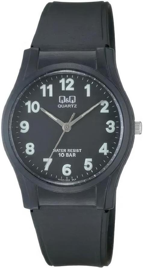 Мужские кварцевые наручные часы небольшого диаметра в легком пластиковом корпусе с высокой водозащитой.