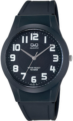 <b>Мужские наручные часы Q&Q VQ50J001Y.</b> Точный кварцевый механизм с аналоговой индикацией. Полимерный корпус надежно защищает часы от механических повреждений. Полимерный ремешок. Натуральный полимерный материал является идеальным для изготовления ремешка благодаря своей чрезвычайной прочности и гибкости. Прочное, устойчивое к царапинам минеральное стекло защищает часы от повреждений.Часы являются водонепроницаемыми до 10 Бар. Цвет корпуса: Черный. Цвет циферблата: Золотистый. Гарантия: 1 год.