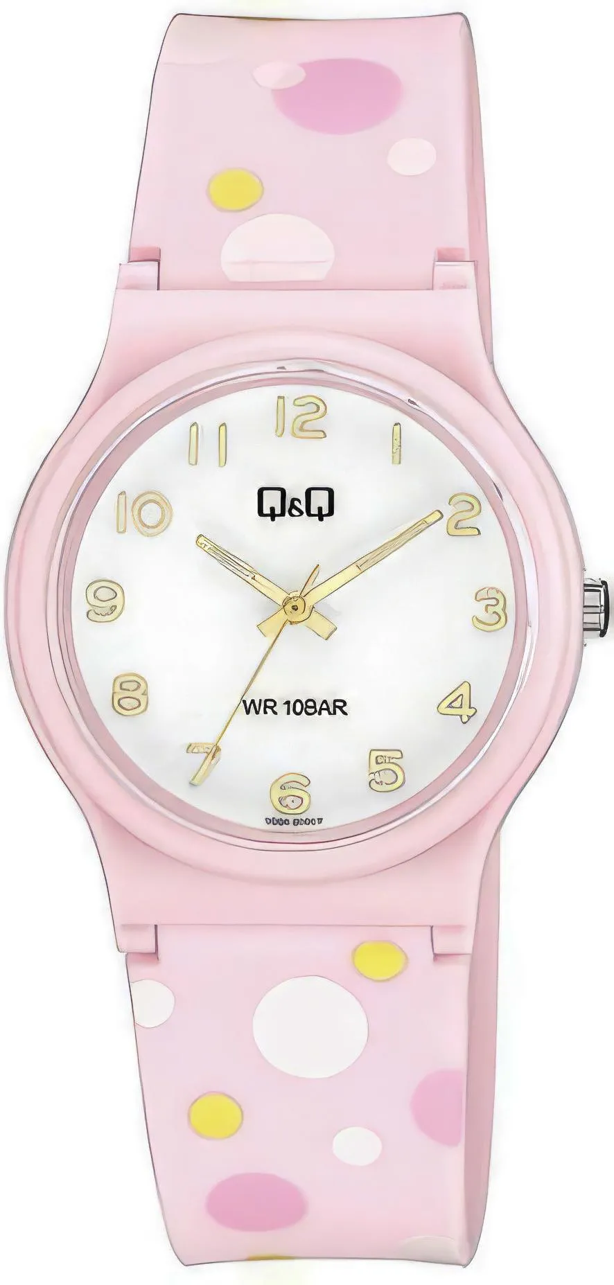 Детские наручные часы Q&Q Kids V06AJ014Y. Точный кварцевый механизм с аналоговой индикацией. Полимерный ремешок. Натуральный полимерный материал является идеальным для изготовления ремешка благодаря своей чрезвычайной прочности и гибкости. Полимерный ремешок. Натуральный полимерный материал является идеальным для изготовления ремешка благодаря своей чрезвычайной прочности и гибкости. Органическое стекло. Часы являются водонепроницаемыми до 10 Бар. Цвет циферблата: Розовый. Цвет корпуса: Белый. Толщина: 10 мм. Гарантия: 1 год.