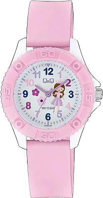Детские наручные часы Q&Q Kids VQ96J027Y. Точный кварцевый механизм с аналоговой индикацией. Полимерный корпус надежно защищает часы от механических повреждений. Полимерный ремешок. Натуральный полимерный материал является идеальным для изготовления ремешка благодаря своей чрезвычайной прочности и гибкости. Органическое стекло. Часы являются водонепроницаемыми до 10 Бар. Цвет корпуса: Розовый. Цвет циферблата: Белый. Гарантия: 1 год.