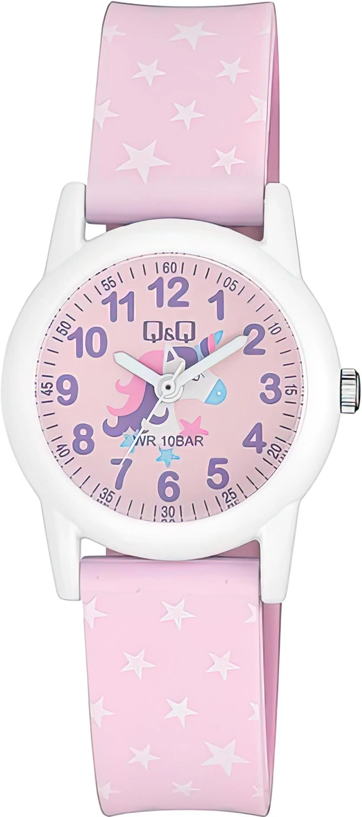 Детские наручные часы Q&Q Kids VR99J013Y. Точный кварцевый механизм с аналоговой индикацией. В отличие от механических часов, не требуют завода и работают от батареи, показывая отклонение всего несколько секунд в месяц. Полимерный ремешок. Натуральный полимерный материал является идеальным для изготовления ремешка благодаря своей чрезвычайной прочности и гибкости. Полимерный корпус надежно защищает часы от механических повреждений. Органическое стекло. Часы являются водонепроницаемыми до 10 Бар. Цвет корпуса: Белый. Цвет циферблата: Розовый. Толщина: 10 мм. Гарантия: 1 год.