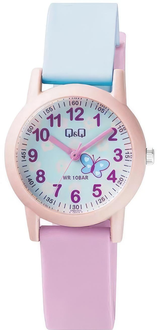 Детские наручные часы Q&Q Kids VS49J003Y. Точный кварцевый механизм с аналоговой индикацией. Полимерный корпус надежно защищает часы от механических повреждений. Полимерный ремешок. Натуральный полимерный материал является идеальным для изготовления ремешка благодаря своей чрезвычайной прочности и гибкости. Органическое стекло. Часы являются водонепроницаемыми до 10 Бар. Цвет корпуса: Розовый. Цвет циферблата: Голубой. Гарантия: 1 год.
